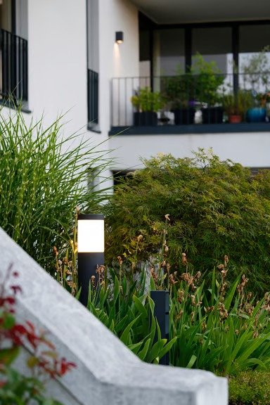 Models equipped with passive infrared motion and light sensors respond to thermal movement, automatically switching on when people or animals pass nearby. They can be easily configured via Bluetooth® using the Beleuchten Smart app, allowing convenient selection of preconfigured modes.