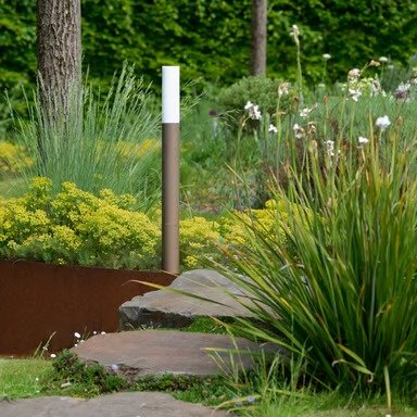 These Beleuchten luminaires provide a pleasant, even light effect for footpaths, terraces, flowerbeds, and house entrance areas. The high-quality three-ply opal glass distributes light evenly and unshielded, and is optionally available in sphere or cylinder shapes.