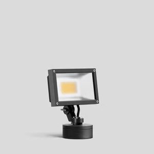 Compact floodlight designed for the wide-area illumination of objects, plants, and architectural details in private spaces. These economical and durable luminaires are ideal for less intense surface illumination in gardens or on houses.