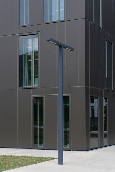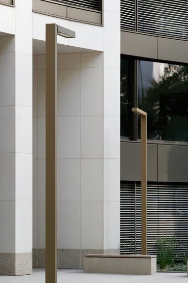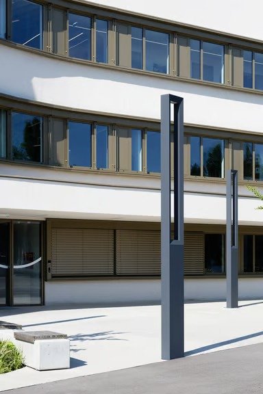 Light building elements with asymmetrical light distribution designed to complement various architectural settings. Different architectural scales require luminaires of suitable proportions, and these elements with a mounting height of 3000 mm provide an ideal lighting solution for small to medium-sized public spaces. They are perfect for entrance areas, pathways, small plazas, and parking zones for bicycles or e-bikes. These illuminating and structure-defining design features are available in both single and double-sided versions.