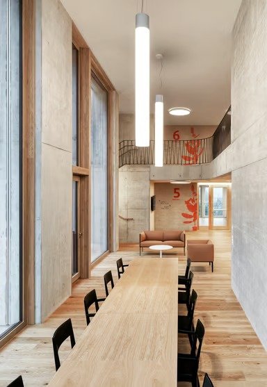 Two key factors often drive lighting design: achieving high illuminance on the target surface and providing unshielded light to create vertical illumination in the room. These pendant luminaires combine both functions. Unshielded light is produced by LED modules of various outputs within the opal glass cylinder, while an additional wide-beam downlight ensures efficient downward-directed illumination. For applications requiring ceiling or structural lighting, versions with upward light emission are also available. Each light function is individually DALI-controllable, enabling virtually any desired lighting atmosphere.