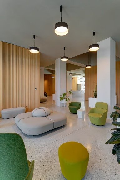 The shielded pendant luminaires in this series create a softly diffused and uniform lighting atmosphere. Additional upward light emission subtly brightens the ceiling, producing indirect yet balanced illumination that is especially pleasing to the eye.