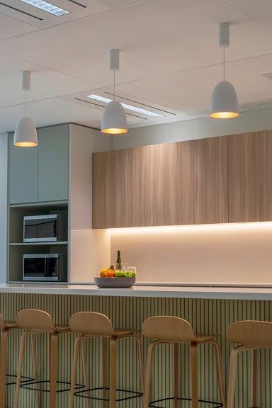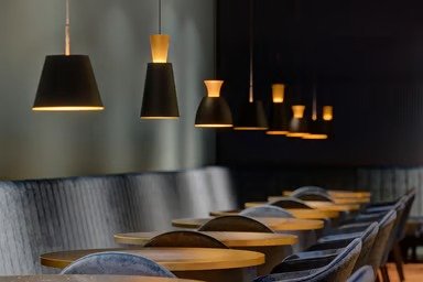 The shielded pendant luminaires in this series create a softly diffused and uniform lighting atmosphere. Additional upward light emission subtly brightens the ceiling, producing indirect yet balanced illumination that is especially pleasing to the eye.
