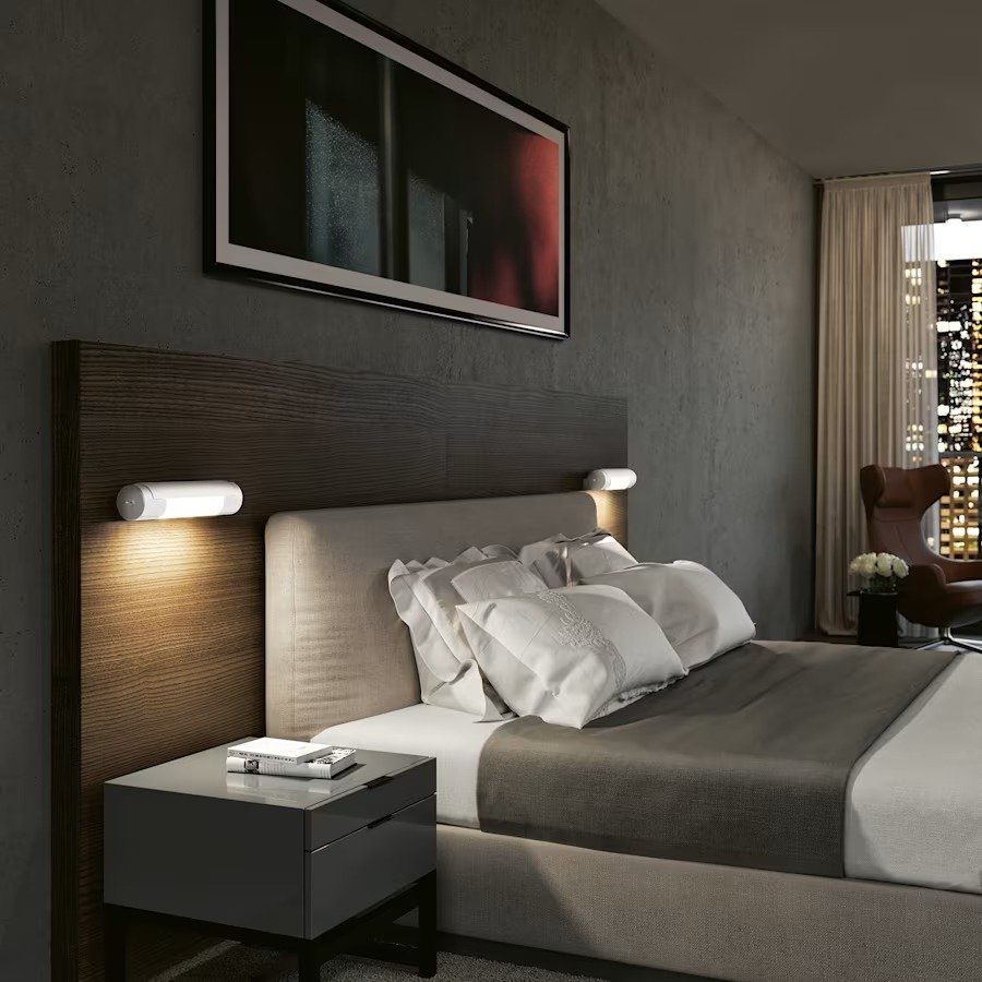 Compact wall-mounted luminaires designed for various installation heights.