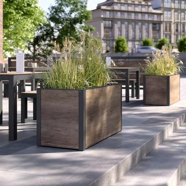 These planters combine functionality with timeless design, offering a versatile way to shape green spaces in public and semi-public areas.